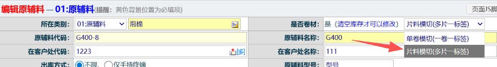 首先资料需创建(修改)成卷料属性,按片料管理 进入界面后,选择对应的资料,点击编辑按钮 确保资料设置为卷料属性,按片料管理后点击提交 ![]() 点晴模切ERP更多信息:http://moqie.clicksun.cn,联系电话:4001861886 该文章在 2026/1/8 17:11:43 编辑过 |