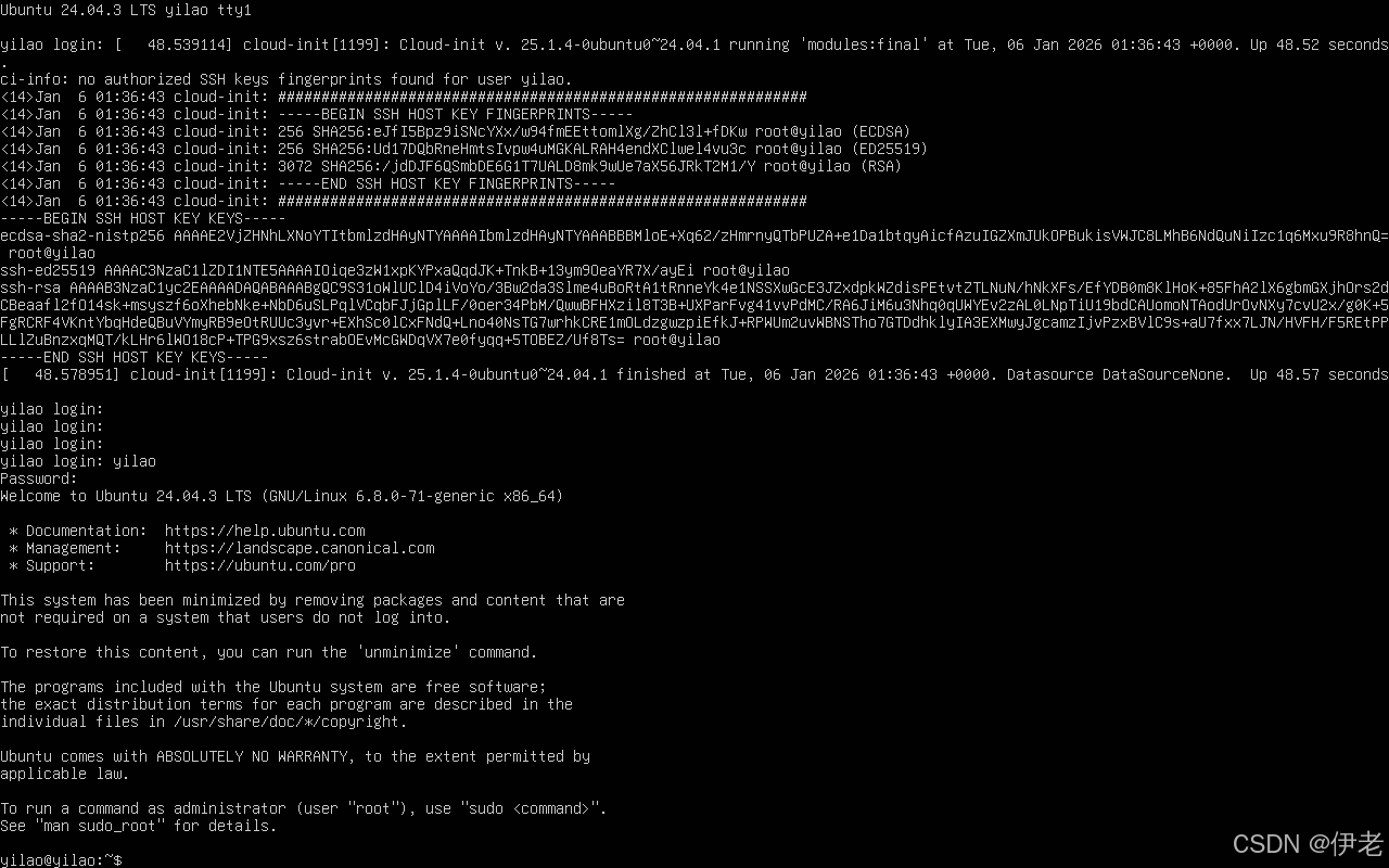 Ubuntu系统最小化安装完成确认
