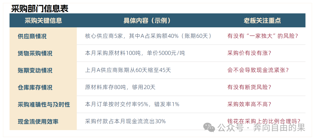 财务管理体系不是“一堆制度+几张报表”,而是“让数据跟着业务跑,让老板不用跑现场就能管公司”的工具。它的核心逻辑很简单:把分散在各部门的“碎片信息”串成“数据链条”,用表格和系统把“业务动作”翻译成“财务语言”,最终变成老板能看懂、能决策的“经营仪表盘”。 ![]() 第一步:先“摸透家底”——调研公司具体情况建体系前,必须先搞清楚“公司现在什么样”,否则设计出来的东西就是“空中楼阁”。 1. 调研流程:先聊老板,再看业务第一步:跟老板深聊:问3个关键问题—— 第二步:实地调研业务:跟着采购、销售、仓库走一遍流程—— 2. 调研重点:抓“影响财务的关键细节”采购部:供应商账期是30天还是60天?有没有“压款”的强势供应商? 销售部:客户回款周期是多久?有没有“老赖”客户? 仓库:库存周转天数是20天还是60天?有没有“压箱底”的积压货? 生产部:原材料损耗率是多少?有没有“边角料浪费”的情况? 第二步:按需“画图纸”——设计老板看得懂的信息表调研完,接下来要做**“老板专属信息表”**:把老板最关心的数据浓缩成“一张表”,让他不用翻10张报表就能掌握全局。 1. 采购部门信息表:盯紧“钱花在哪、货够不够”老板最关心采购的3件事:供应商靠谱吗?钱付得值吗?库存够不够? 用一张表整合: ![]() Excel模板提示:用“条件格式”标红异常数据,老板一眼能看到风险。 2. 销售部门信息表:盯紧“钱从哪来、客稳不稳”老板最关心销售的3件事:卖得怎么样?客户靠谱吗?钱能收回来吗? 用一张表整合: ![]() 第三步:搭“数据流水线”——让信息从基层流到老板有了信息表,接下来要建**“数据收集-汇总-分析”的流水线**,确保数据“准、快、全”。 1. 数据流程:从“基层填数”到“老板决策”闭环![]() 2. 关键:明确“谁填、何时填、填什么”基层员工:采购员每天下班前填“采购明细表”(供应商、金额、账期);销售员每周五填“客户回款表”(客户、金额、逾期天数) 部门负责人:每周一对上周数据进行汇总,标红异常(回款逾期超10天的客户等) 财务部门:每月5日前整合所有数据,生成“老板仪表盘”(用Excel透视表或BI工具,比如Power BI等等) ![]() ![]() (注:模板可直接复制到Excel,用“条件格式”设置异常标记,老板打开就能看重点。) 第四步:装“五大引擎”——让体系“活起来”光有数据还不够,得用五大系统把数据变成“管理能力”,支撑公司运营: 五大系统及整合逻辑![]() 五大系统关联逻辑图![]() 财务管理体系不是“枷锁”好的财务管理体系,不是“管着大家干活”,而是“帮大家把活干对、干好”。 -END- 阅读原文:原文链接 点晴模切ERP更多信息:https://moqie.clicksun.cn,联系电话:4001861886 该文章在 2026/1/16 12:53:27 编辑过 |