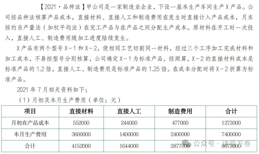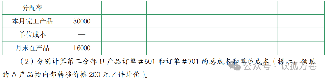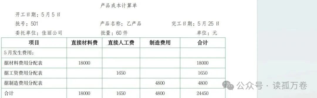 情形一:401批甲产品(标准分批法)情况:4月投产,5月全部完工。 处理:分批法标准应用。该批次5月全部完工后,将其成本计算单上归集的全部生产费用(4月末余额+5月发生费用)合计30,600元,直接全部结转为10件产成品的总成本,并计算单位成本。 特点:不存在任何在完工产品与在产品之间的费用分配问题,简单、直接。