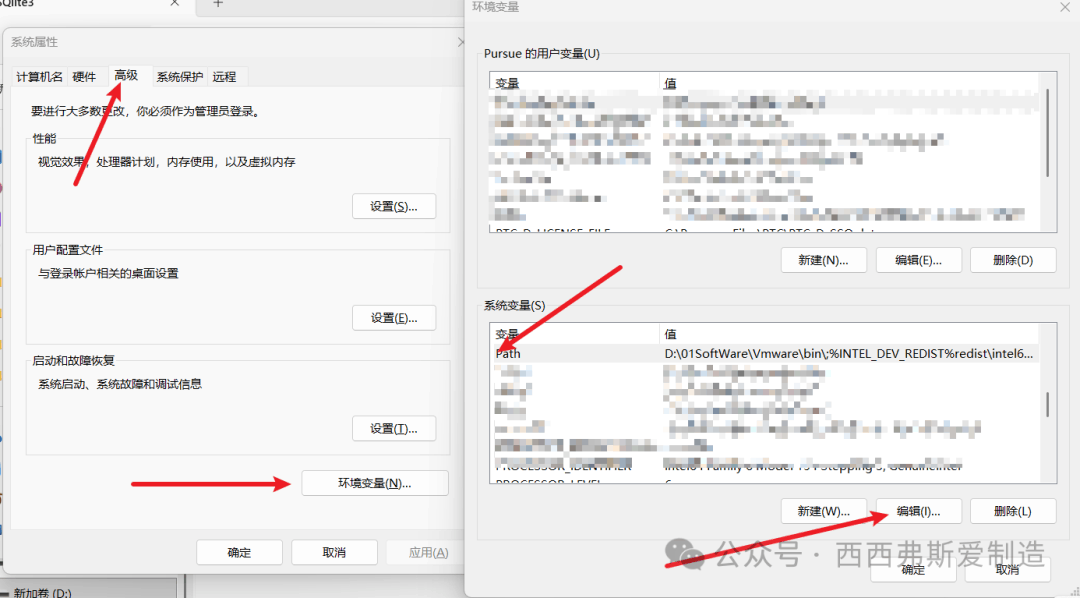 在桌面或开始菜单右键点击“此电脑”或“我的电脑”,选择“属性”。在弹出的“系统属性”窗口中,点击底部“环境变量(N)…”按钮。打开windows的cmd,输入“sqlite3”验证安装是否成功,操作流程如下图所示: