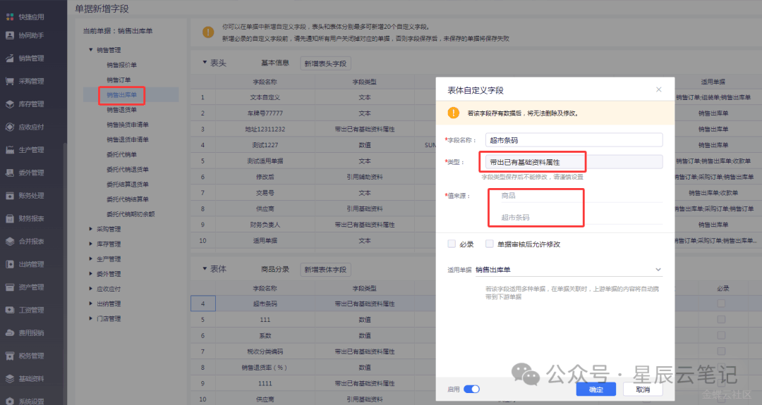 [点晴模切ERP]金蝶云·星辰单据新增字段常见问题