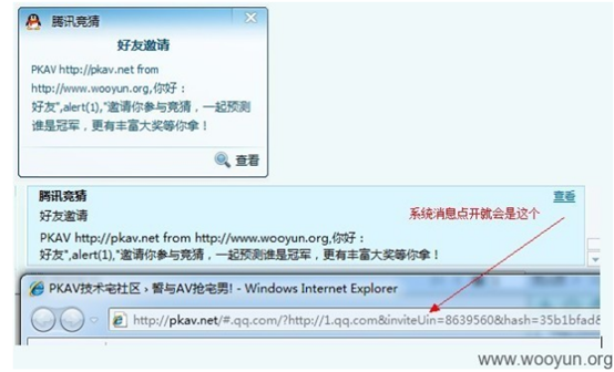 漏洞链接:腾讯QQ某处右下角信息提示无限弹窗 漏洞链接:利用QQ某活动给任意QQ弹右下角小窗口 附加说明:这些实际上,都还不够成“安全漏洞”。 场景7: QQ右下角弹窗篇之伪造弹窗 上面这个并不会影响到你的“人身安全”,但是这一个就不一样了。有没有想过,当你点开一条系统推送的消息时,消息内容是假的,连点开的链接都是假的?点开弹窗的消息后,cookies就被黑客偷取了!这样的事情确实出现过! 自从笔者和团队成员发现这个漏洞后,都不敢点开这个东东了!