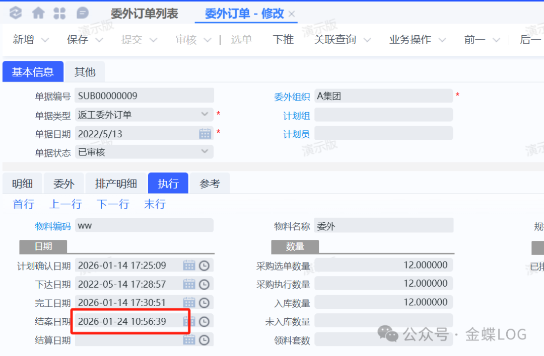二、委外订单已经结算工单【结算】了,说明工单结案的时间对应存货期间也结账了;故而工单会变成【结算】状态。