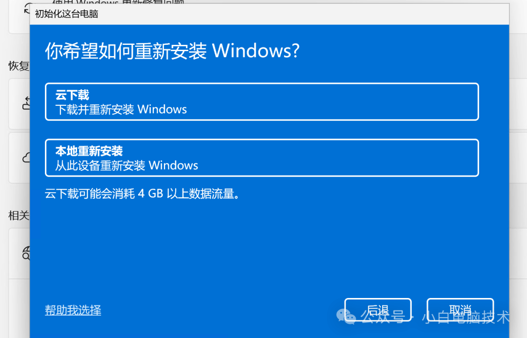 - 本地重新安装:使用电脑现有恢复分区或文件,速度更快