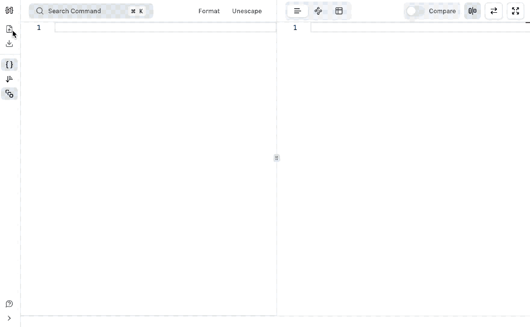 比较:支持结构化差异对比和纯文本对比,方便快速发现两个JSON文件的异同。
