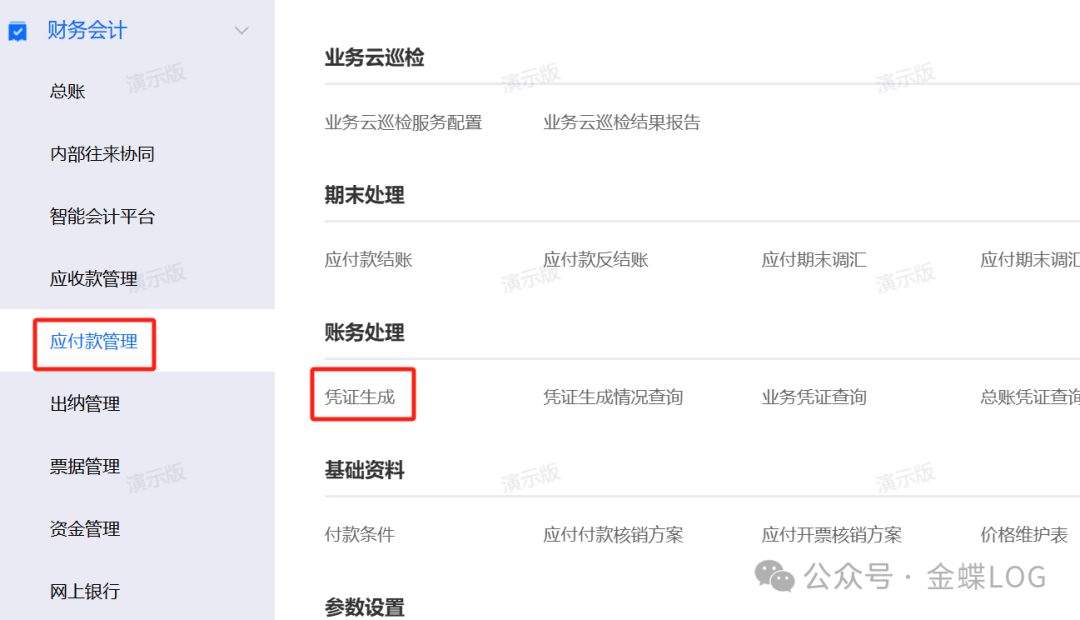 ②通过各模块的【凭证生成】功能生成系统的一些模块里会有【凭证生成】功能。比如应付、应收、出纳,存货这些模块都会有。