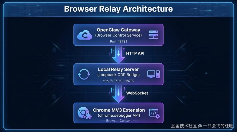 Browser Relay 由三个核心组件构成: