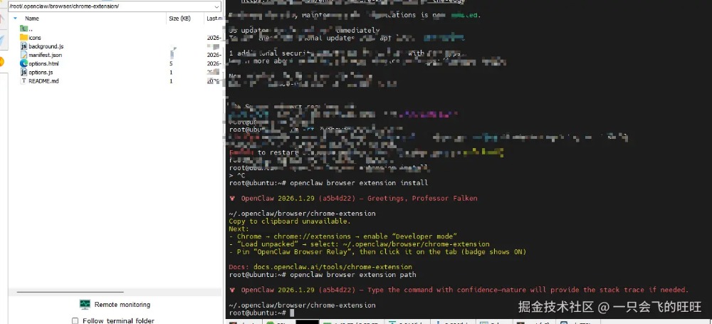 本文将深入介绍 OpenClaw 的远程浏览器功能——特别是 Chrome Extension Relay 模式,以及我在使用过程中遇到的问题和解决方案。至于为嘛不用内置的浏览器功能,因为启动一个chrome我的小服务器就快顶不住了!