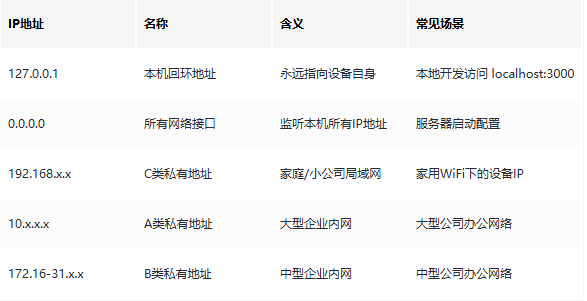 以下特殊IP在开发中高频出现,记牢能避免很多踩坑: