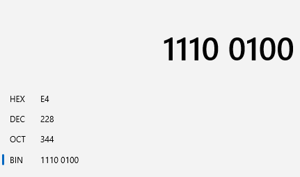 "中"这个字符的码点为U+4E2D,在U+0800~U+FFFF范围内,占用 3 字节。 - 十六进制转换成二进制