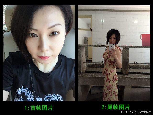 素材图片首帧为有些 “现代风” 的人物座在汽车后排的场景,尾帧是有些 “复古风” 的人物在女生宿舍的场景,看看 AI 模型根据提供的素材会生成什么样的结果视频,期待中还是夹杂着一丝好奇的。