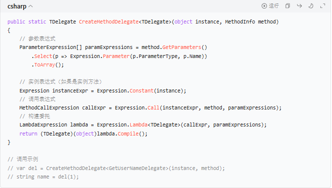2. 使用 Delegate.CreateDelegate(比 Invoke 快 5~10 倍)