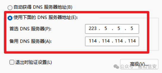 备用DNS服务器输入:114.114.114.1145. 点击"确定"→关闭所有窗口
