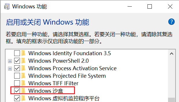 Windows Sandbox 默认是关闭的,需要手动启用。
