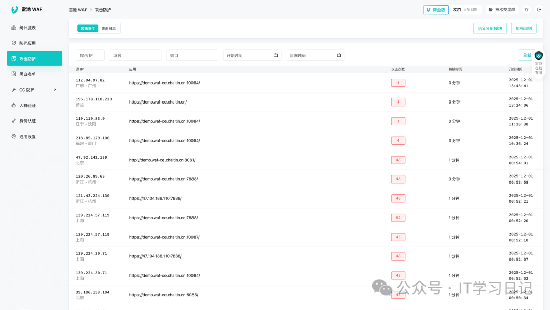 简介SafeL是一款开源免费的自托管Web应用防火墙(WAF),旨在为Web应用服务提供一层安全防护屏障,可有效防御各类非法恶意攻击。它提供了访问频率限制、人机验证、动态防护等核心功能,通过过滤和监控Web应用与互联网之间的HTTP流量来保护Web服务,可有效抵御各类SQL注入、XSS、代码注入、命令注入、CRLF注入、ldap注入、xpath注入、RCE、XXE、SSRF、路径遍历、后门、暴力破解、CC、爬虫等攻击,保护用户资产不受侵害。 SafeL的防护效果不仅仅只是纸上谈兵,截止目前为止,在全球装机量已经超过30万台,日均处理300亿次请求,检出率76.17%,误报率仅0.22%。 它支持容器化部署(Docker 、Docker-compose)和自有服务器部署2种方式,用户可基于需求灵活选择,作为自托管WAF,用户可对流量、日志、配置完全掌控,不依赖任何第三方SaaS,适合对数据隐私、安全性有较高要求的个人和团队,可应用于个人网站、企业网站、企业各类服务,大型Web应用等多种场景。
