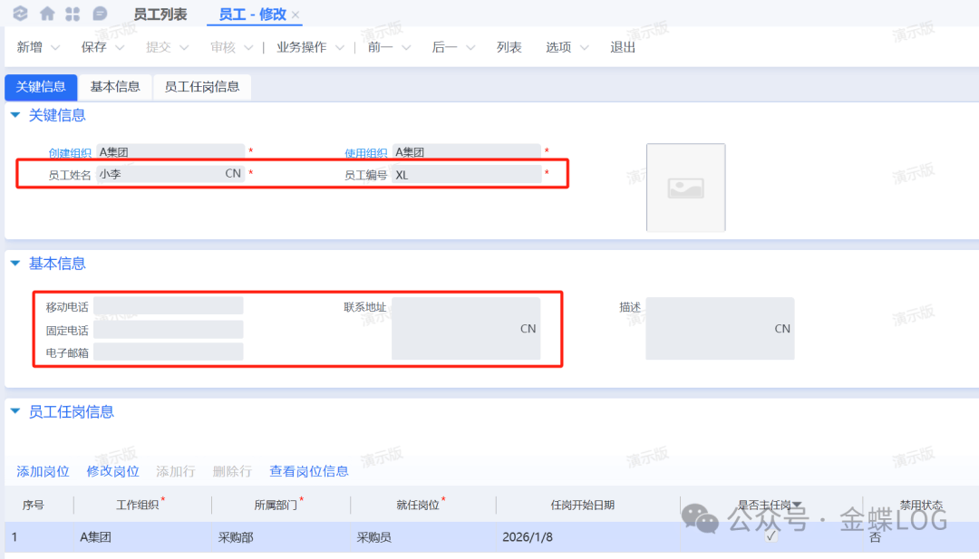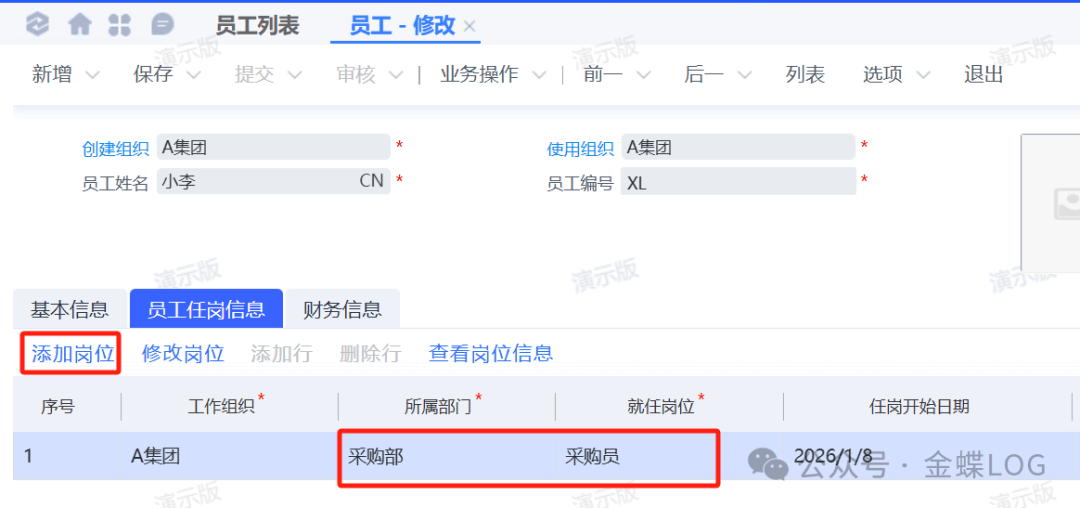 [点晴模切ERP]金蝶云星空如何新增员工、岗位信息和员工任岗