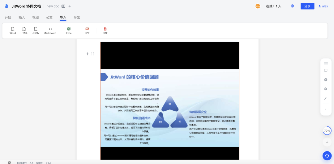 说实话,Office 预览这个需求听起来简单,实现起来却是个"硬骨头": 我们的目标很明确:在 JitWord 文档里,PDF/Excel/PPT要像"原生内容"一样流畅预览,还能和文字、图片、脑图混搭排版: