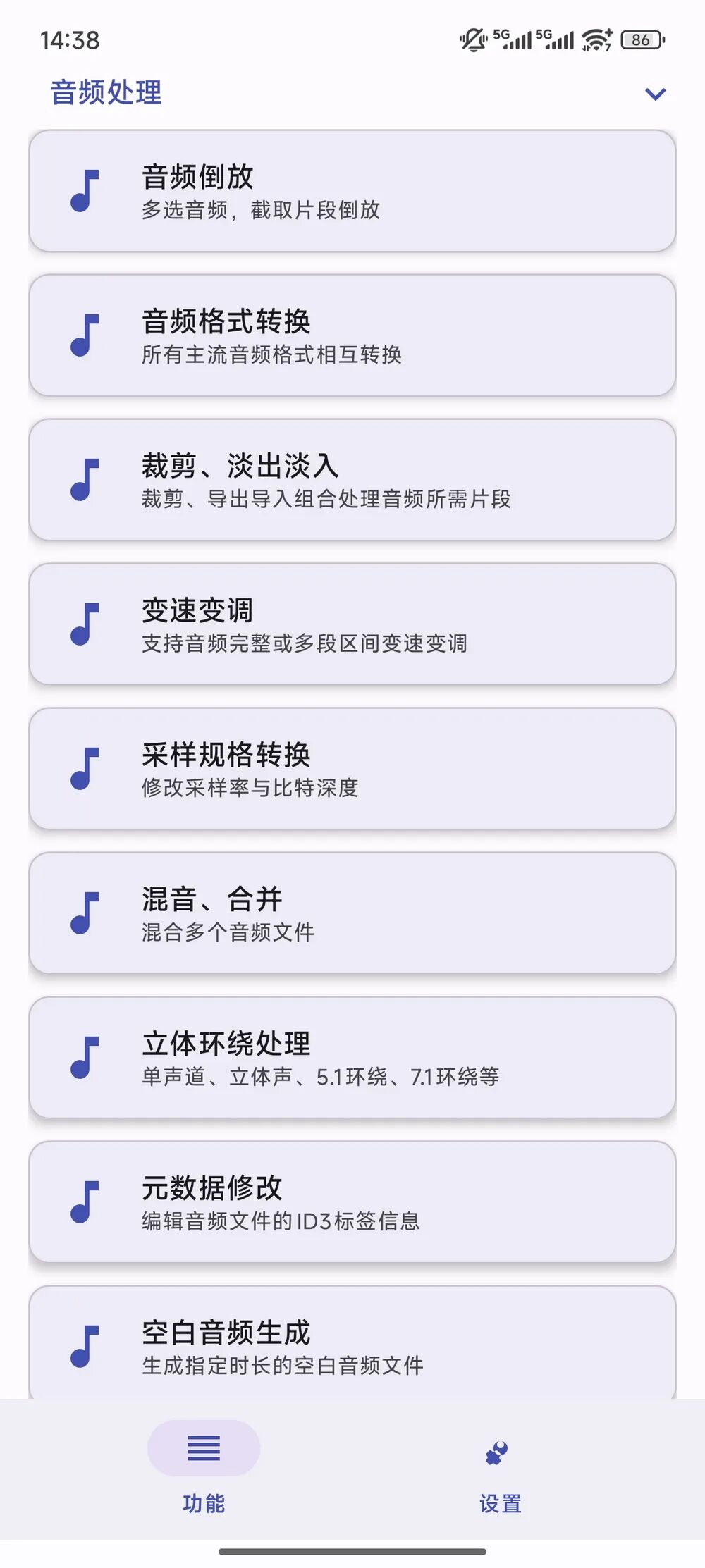 基础操作:音频倒放、格式转换、精准裁剪,轻松截取喜欢的音频片段; 音效优化:支持音频变速,快慢调节不改变音调;还能添加立体环绕音效,听歌、做音频素材更有氛围感; 细节调整:可修改音频元数据,让音频信息更规范。 图片