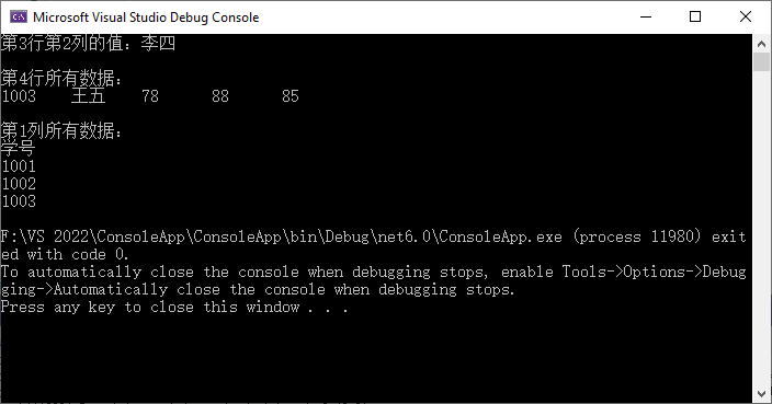 Console.WriteLine("\n\n第1列所有数据:");