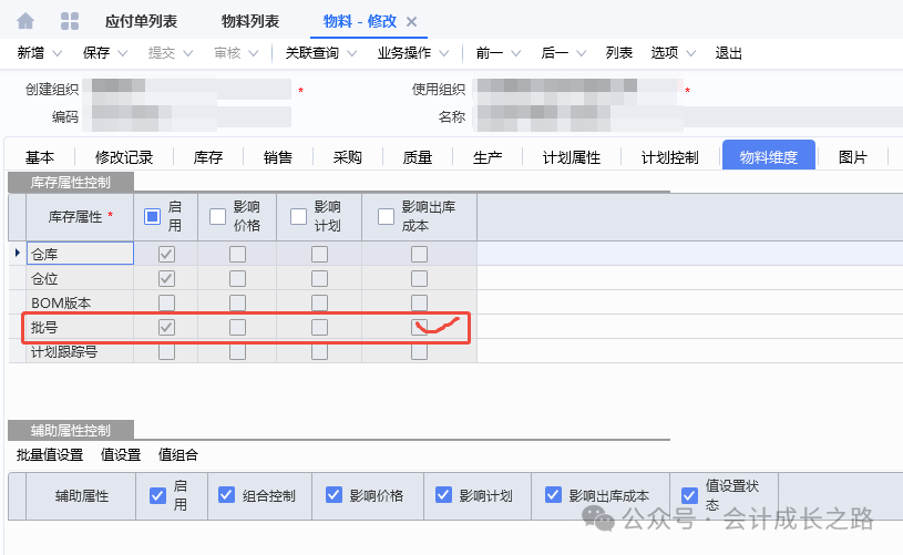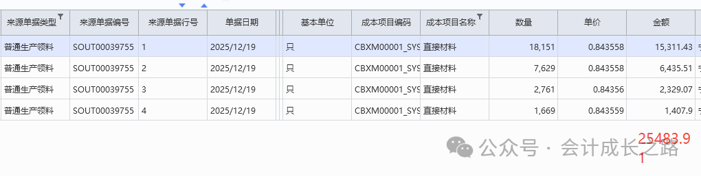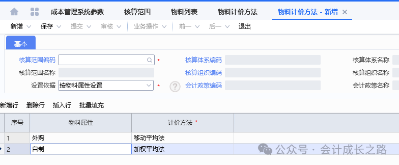 2、金蝶云星空物料计价方法设置:成本管理-存货核算-核算范围-新增设置。3、每个存货价值区域都可有其独立的计价方式,比如某核算范围的计价方法是加权平均、但该核算范围下有某类特殊物料要按移动平均计价,则可以采用此物料计价方法进行设置(一般不建议使用)。4、物料属性在新建物料时定义,目前金蝶云星空不支持自定义修改添加物料属性,只能使用标准系统预置的物料属性,强行自定义添加会导致该属性物料无法正常参与存货核算。5、物料计价方法变更: 主要是指企业采用某计价方法核算一段时间后,因管理或对外报告的需要需采用另一种计价方法进行核算,这样就需通过物料计价方法变更对现有计价方法进行变更。变更之后无法反审核删除,需谨慎使用。6、金蝶云星空目前没有个别计价法,要达到个别计价法功能,需要借助批号来执行,在每个物料的物料维度库存属性批号行勾选影响出库成本可以实现。通过生产订单下的生产领料单、生产补料单、生产退料单归集(投入金额),根据BOM表定额耗用量在完工产品和在产品之间分配。例如:本期生产数量30000只,合理损耗210只,直接领料金额25483.91,倒冲领料金额2409.27(完工数量25477只)间接领料分摊金额212.3(完工产品承担)本期投入直接材料金额=25483.91+2409.27=27893.18;本期间接材料金额=212.3,全部分摊到完工产品。本期完工25477只,合理损耗=25477/30000*210=178只;(25477+178)/30210*25483.91+2409.27=24050.77;期末在产品4523只直接材料金额=27893.18-24050.77=3842.41。本实例涉及了多种领料方式、合理损耗、共耗材料分摊,是比较复杂的一种分配过程。实际操作中物料材料金额分配不是课本中单纯的根据总金额/总数量*入库数量或者未入库数量得到的。需要从业务逻辑多方面考量。