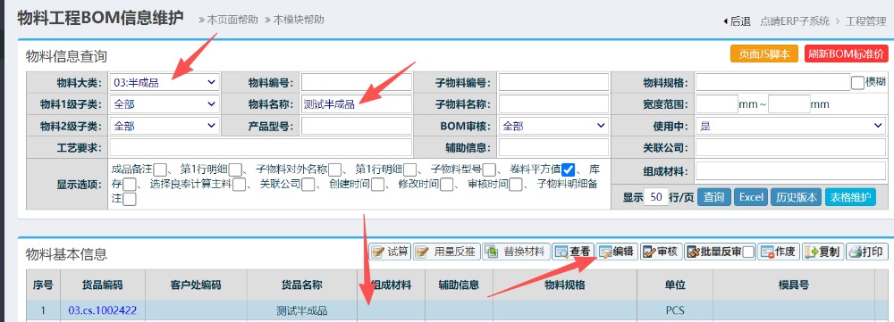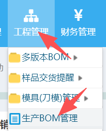 操作步骤:工程管理-生产BOM管理,如下图: