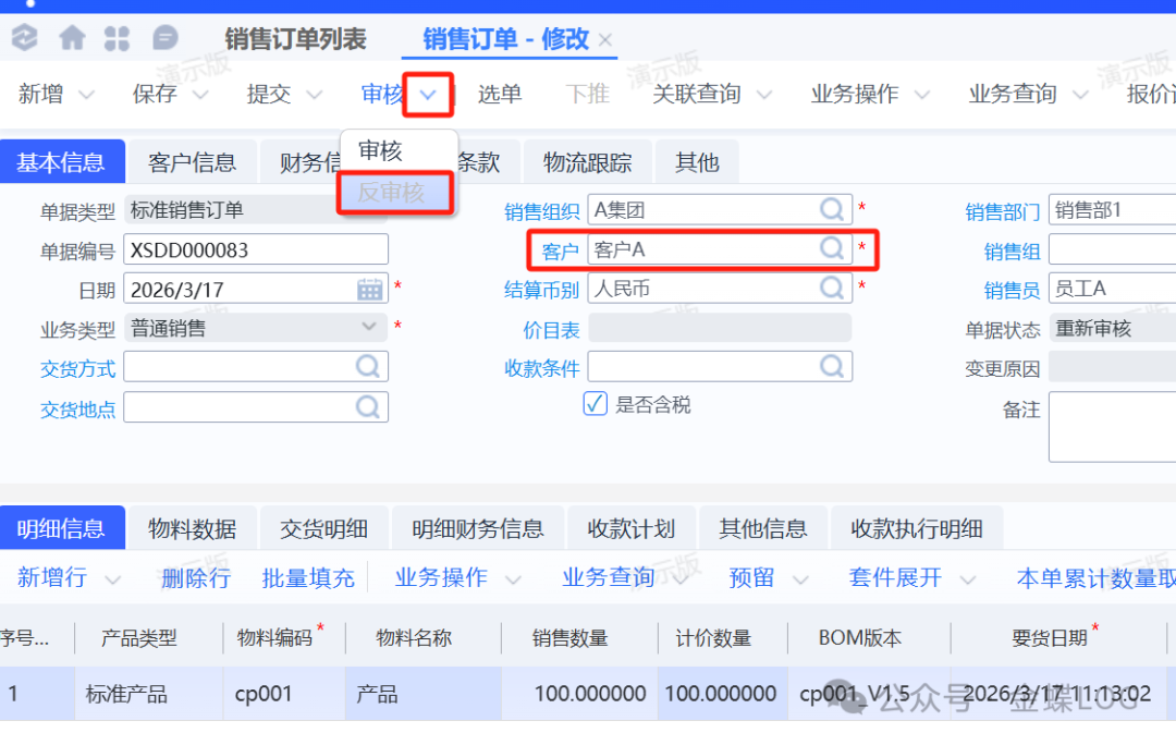 重新选择客户之后,销售订单价格会发生变化,所以在审核之前要确认清楚价格是否正确。