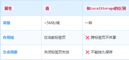 SessionStorage 和 LocalStorage 几乎一样,唯一的区别是——关闭标签页就没了。