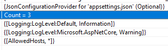 查找 Logging:LogLevel:Default 时,并不需要先定位 Logging 再往下查找 LogLevel ,而是直接使用字符串 Logging:LogLevel:Default 作为 Key 从配置字典中查询对应的 Value。