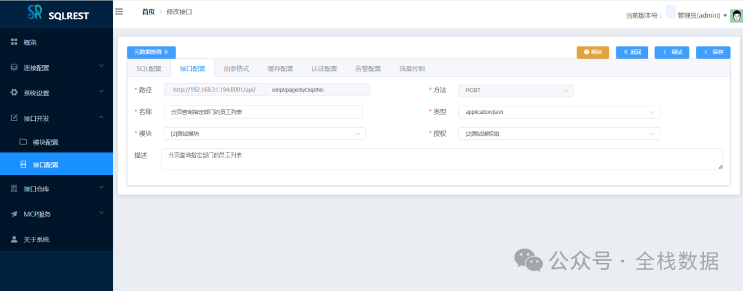 在Web开发的世界里,我们似乎总在重复着相似的剧本:设计好数据库表结构,然后便是无穷无尽的Controller、Service、Mapper三层架构代码编写。哪怕只是一个简单的增删改查接口,也得按部就班地走一遍流程。这种“体力活”不仅消耗着开发者的热情,也拖慢了项目的迭代速度。 有没有一种可能,让我们从这些重复劳动中解放出来,更专注于核心业务逻辑的设计? 今天,就给大家介绍一款来自Dromara开源组织的宝藏项目——SQLREST。它是一款免费开源的低代码工具,核心理念就是“SQL秒变API”,旨在帮助开发者快速构建RESTful接口,将我们从繁琐的CRUD编码中解放出来。 1 系统简介 SQLREST,顾名思义,它的核心能力就是将SQL操作直接转化为RESTful API。你不再需要为每个数据表编写大量的样板代码,只需在SQLREST的界面上配置好数据源,编写你的SQL语句(甚至支持MyBatis的动态SQL语法),简单设置一下接口路径和参数,一个功能完备、符合RESTful规范的API接口就诞生了。 它就像一个强大的“API工厂”,输入是你的SQL,输出就是可以直接被前端或其他服务调用的HTTP接口。对于需要快速交付的中小型项目、数据中台的数据共享场景,或是需要将数据库能力快速暴露给外部的需求,SQLREST无疑是一把利器。 定义接口 修改接口 接口测试 接口文档 接口详情 MCP服务 2 系统特点 SQLREST之所以能吸引众多开发者的目光,主要得益于以下几个鲜明的特点: