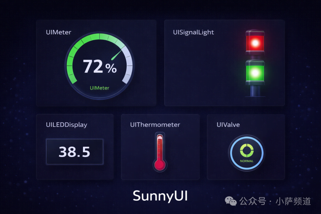 工业软件场景,它真的能打很多 WinForm 开发者不知道的是,SunnyUI 那一套工业控件是它区别于大多数 UI 库的杀手级能力。 做过工厂监控软件、PLC 数据采集系统、嵌入式上位机的人都知道,工业场景对 UI 的要求很特殊: