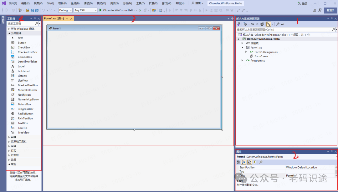 基于.NET的Windows窗体编程,就是我们常说的WinForms编程,它一个基于.NET的UI框架,用于创建适用于 Windows 的丰富桌面客户端应用,Windows窗体开发平台支持广泛的应用开发功能,包括控件、图形、数据绑定和用户输入。对于Windows窗体编程,微软也提供了Visual Studio这一开发神器,通过Visual Studio的可视化控件拖放等功能可以轻松构建桌面应用。在Windows窗体中,窗体是向用户显示信息的可视界面,通过窗体上的控件来显示信息,接收用户请求等操作,这些控件可以显示文本框、按钮、下拉框、单选按钮,甚至网页等非常丰富的内容。Windows窗体编程中的控件,可以是简单的按钮,文本框,也可以是复杂的数据列表,菜单等内容,在接下来的文章中,由浅入深,会逐一讲解。