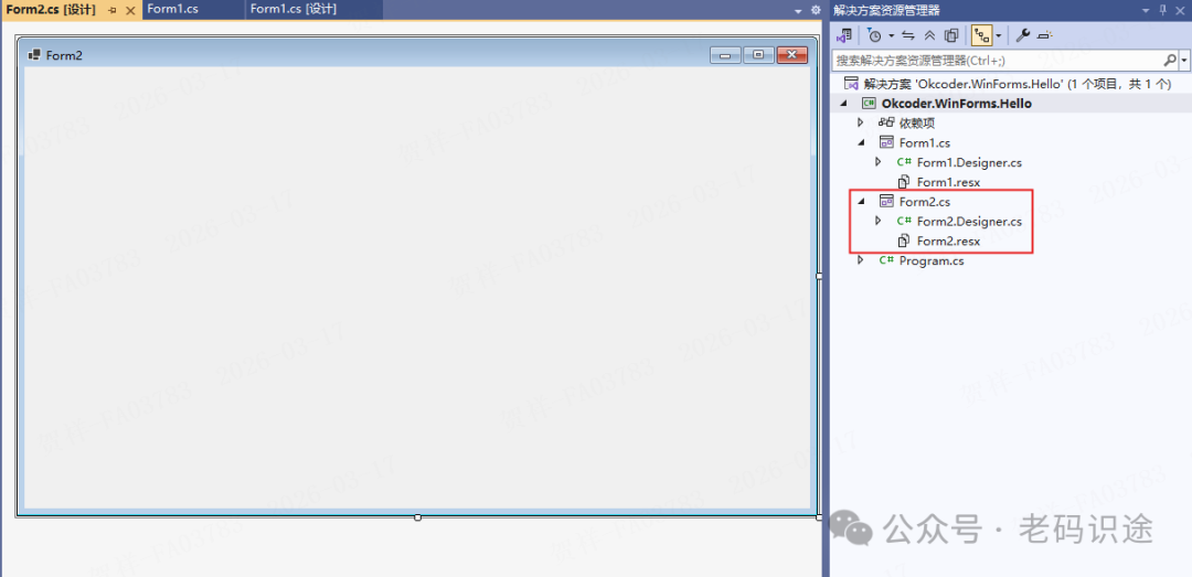 注意:Form2.Designer.cs及Form2.resx这两个文件一般通过VS设计器自动生成,无需要手动修改。