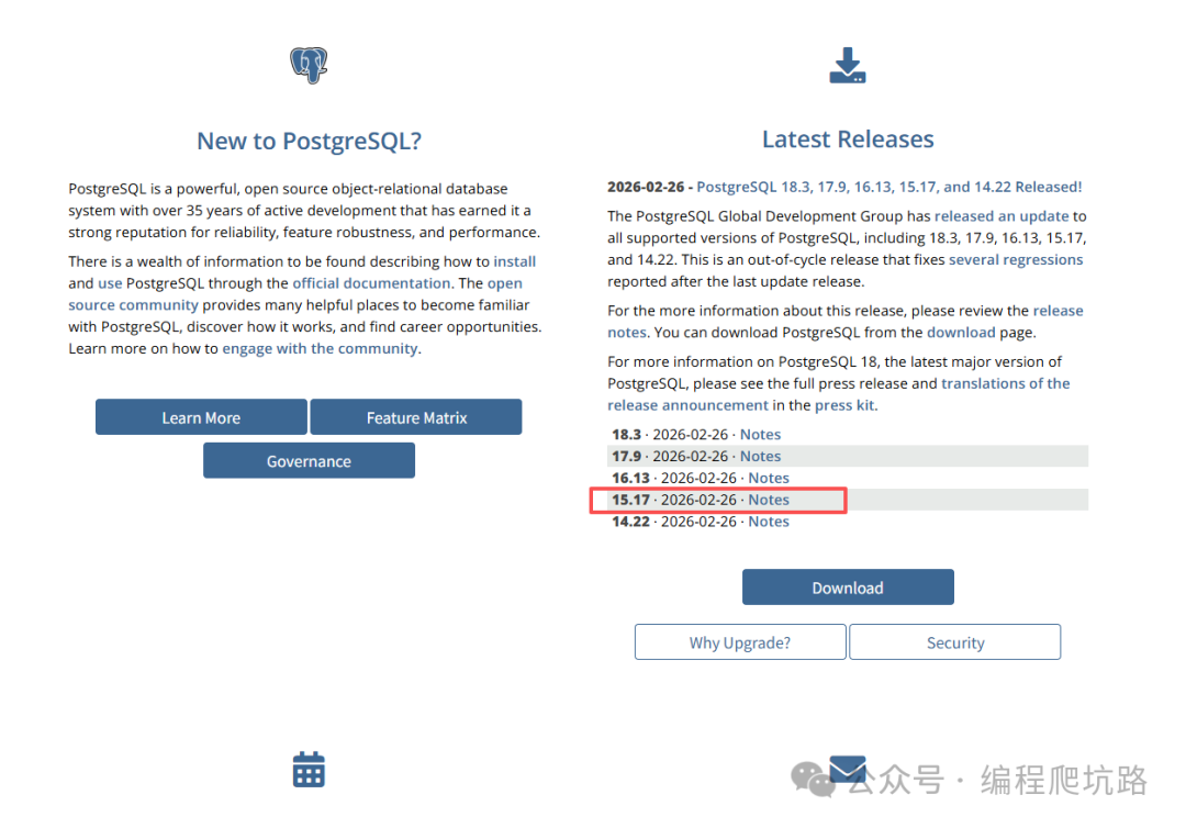 1. 1. 打开 PostgreSQL 官网: