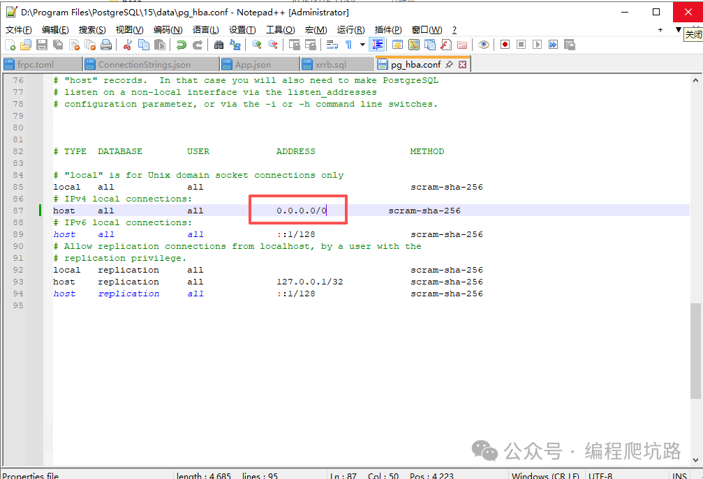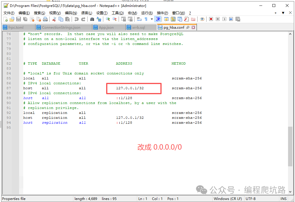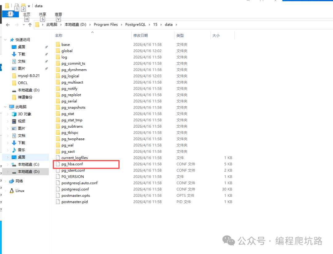 找到 data 目录下的 pg_hba.conf