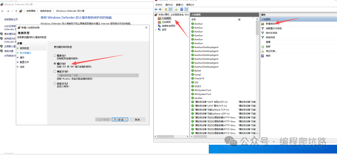 2. 2. 新建 入站规则 → 端口 → TCP