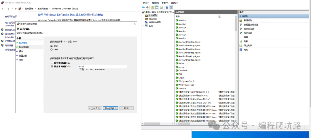 3. Windows 防火墙放行 5432 端口