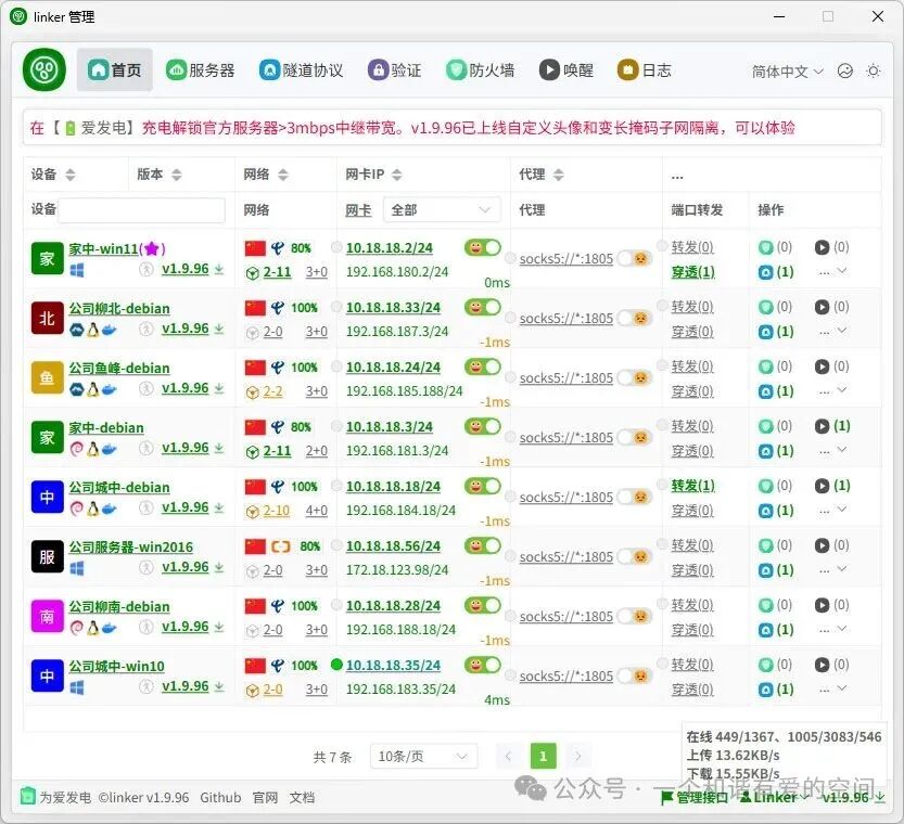 linker 极具特色的,P2P打洞(UDP+TCP、IPV4+IPV6) + 服务器转发,实现的异地组网、内网穿透。让你那些散落在世界各地的联网设备就像在隔壁房间一样轻松访问。