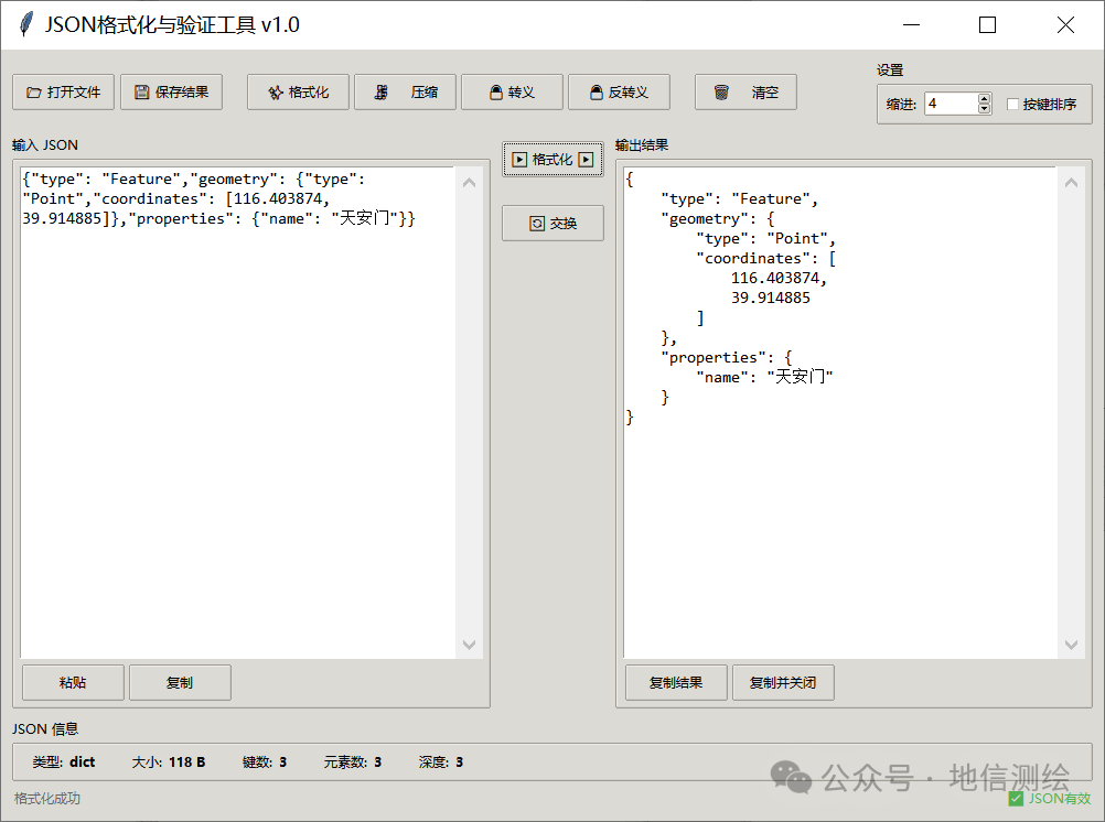 JSON格式化工具:支持JSON格式化、JSON验证、JSON压缩、字符串转义