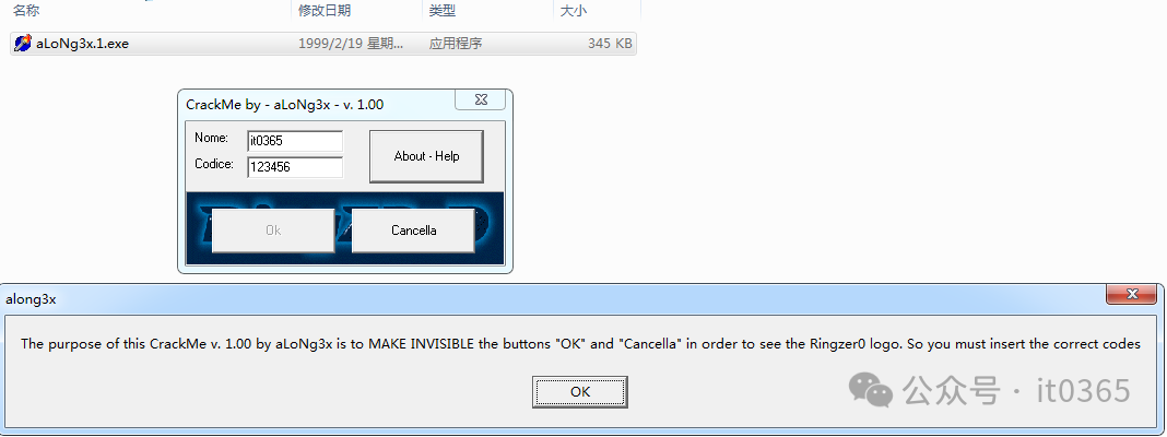 接上一篇软件逆向破解零基础入门实战5​我们继续学习软件逆向破解零基础入门第6篇。这次的练习程序也是Delphi写的程序,功能也相对简单。一个简单的crackme程序,难度1颗星,要求输入正确的用户名和注册码将下面2个按钮隐藏显示出后面的图片。上一篇中讲到找按钮或功能函数是将反汇编出来的所有段头进行下断点,看看它在哪里断...