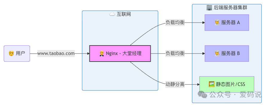 🧐Nginx是什么?Nginx(发音是EngineX)是一个高性能的HTTP和反向代理服务器。如果把你的网站服务器比作一家大饭店的后厨,那么Nginx就是这家饭店的大堂经理。他站在饭店门口。所有的客人都必须先见他。他负责安排座位、传达菜单、维持秩序。📜历史背景:为什么会有Nginx?(C10K问题)在Nginx出现...