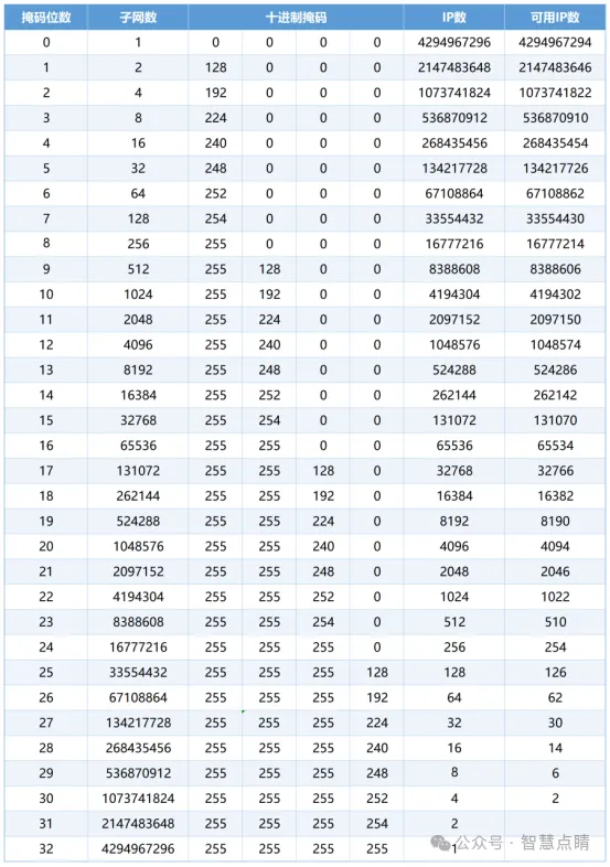 掩码的长度THINKMO01子网掩码,总共32位,甭管它长啥样(255.255.255.X),它的核心作用就一个:告诉设备,IP地址里哪部分是网络位,哪部分是主机位。关键来了:掩码位数每多一位(网络位变长),能用的主机IP地址数量就咔咔往下掉!看这张灵魂总结图:记住这个规律:掩码越长(/后面的数字越大),网络划分越细,...