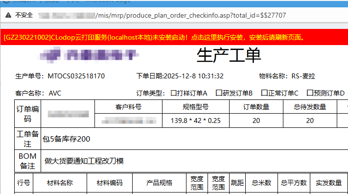 扫码领料单标签发料时弹出“标签与领料单信息不符,请查看领料的物料编码与标签物料编码是否一致,标准宽是否一致或者在可用宽度范围内。” 答:这个是因为领料单上的物料编码和发料的编码不一致,在“仓库管理”》“销售出库管理”》“生产领料出库”》“新增领料出库单”进行编辑。如果需要替用,也可以做工单编辑操作后再领料​如...