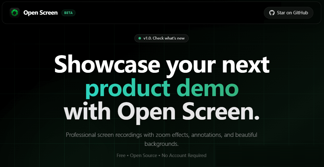 作为内容创作者,你是否曾经为了制作高质量的产品演示视频而烦恼?🎬想要专业的录屏效果,但ScreenStudio每月29美元的价格让人望而却步。今天给大家介绍一款完全免费、开源、无水印的录屏神器——OpenScreen!OpenScreen OpenScreen是一个开源的屏幕录制和视频编辑工具,旨在成为Scre...