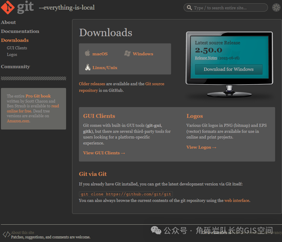 Git下载可以在官方网站进行,选择对应系统版本和位数下载即可。官方网站:https://git-scm.com/如果国外网站下载速度过慢,或是无法正常下载,可以选择在镜像站进行下载。CNPMBinariesMirror:https://registry.npmmirror.com/binary.html?path=gi...