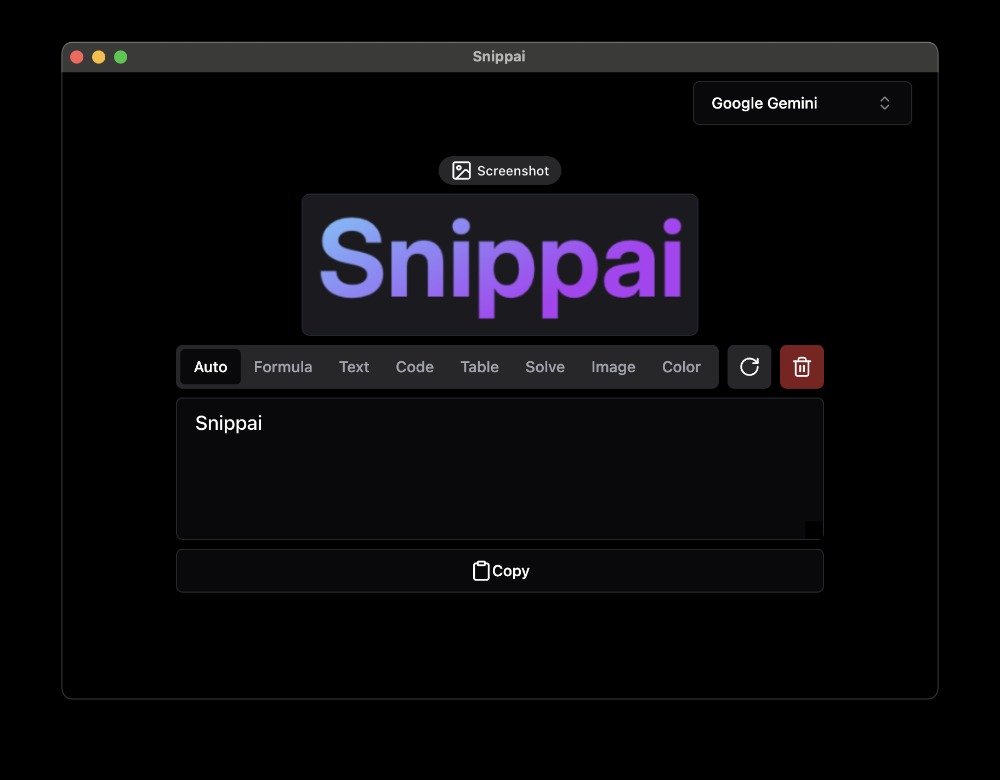 https://github.com/xyTom/snippai🆔软件名称:Snippai⭐️软件功能:截图➡️支持平台:#Windows#macOS#Linux📁软件简介:一款功能强大的智能截图工具,不仅能够识别图像中的公式和文本,还能分析和描述图像内容。主要功能包括公式识别、文本提取、表格转换、图像分析、问...