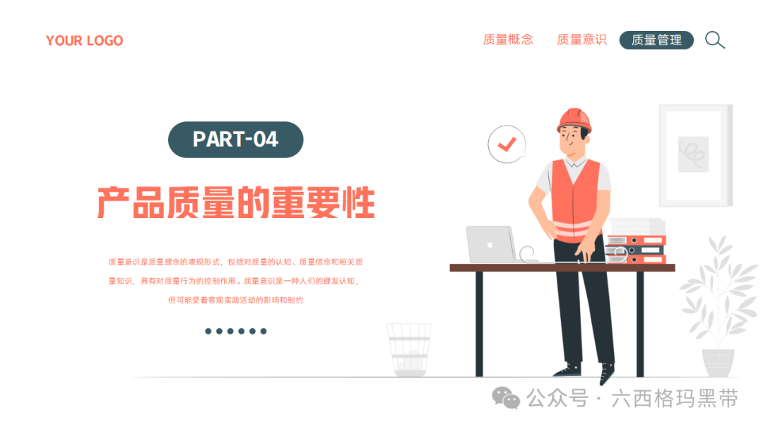 质量已成为企业持续发展和赢得客户信任的关键因素。质量意识,作为质量理念的具体体现,不仅关乎产品的优劣,更直接影响到企业的声誉、市场份额乃至生存与发展。因此,加强员工的质量意识培训,对于提升企业整体质量管理水平、促进企业文化建设具有重要意义。我们来探讨质量意识的重要性、质量的基础知识、对质量的不同理解、质量的意义以及质量的特性,旨在为员工提供全面而深入的质量管理知识,促进质量意识的提升。 质量意识的重要性质量意识是质量理念的表现形式质量意识是指员工对质量的认识、态度和价值观,它直接指导着员工在日常工作中的行为选择。一个拥有强烈质量意识的员工,会自觉地将高质量标准融入到每一项工作中,从源头上减少质量问题的发生。质量意识是企业文化的重要组成部分,它体现了企业对质量的重视程度和对顾客需求的关注。 控制质量行为质量意识能够引导员工遵循既定的质量控制流程和规范,确保每个环节都达到预定的质量标准。通过培养员工的质量意识,可以形成一种自我约束和相互监督的机制,有效降低不良品率,提升产品整体质量水平。 质量意识受客观实践活动影响和制约质量意识并非凭空产生,而是基于实际工作中的经验积累和对质量问题的深刻认识。企业通过组织质量培训、案例分析、现场指导等活动,可以帮助员工树立正确的质量观念,同时,员工在实际操作中的反馈和体验也会进一步丰富和深化其质量意识。 质量基础知识质量的定义质量是指一组固有的特性满足要求的程度。这一定义强调了质量的主观性和相对性,即质量的好坏取决于产品或服务是否满足了预定的要求或期望。这些要求可能来自顾客、法律法规、行业标准或企业内部标准等。此外,质量的概念广泛,涵盖了所有可单独描述和研究的事物,无论是有形的产品还是无形的服务,都有其质量属性。 质量的意义