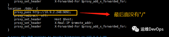 说明:proxy_pass最后面没有斜杠”/”,此时通过浏览器请求http://10.9.2.248/bbb/,那么实际访问的地址就是 http://10.9.2.248:9091/bbb/,会将匹配路径/bbb一起加过去