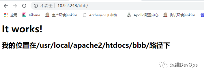 在httpd默认路径下(htdocs)创建一个名称为ccc的文件夹,在内部定义一个index.html,然后访问,如图: