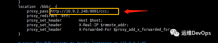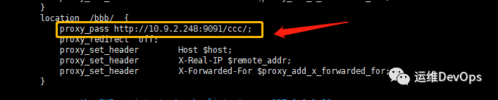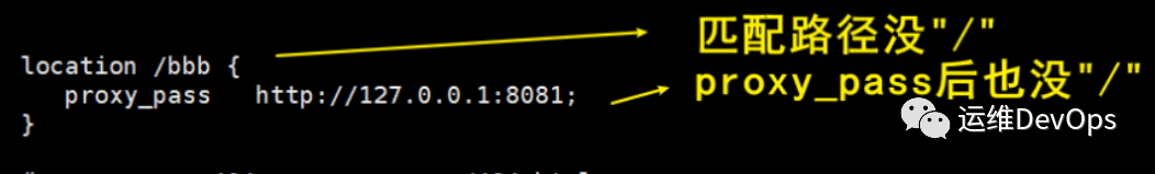 第二种情况: proxy_pass最后面有斜杠 “/”,匹配路径也有斜杠(/bbb/),如图